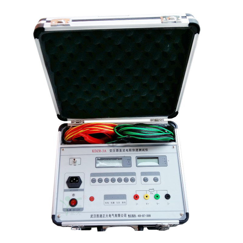 KDZR-3A直流電阻測(cè)試儀(微歐計(jì))是取代直流單、雙臂電橋的高精度換代產(chǎn)品。儀器采用了先進(jìn)的開關(guān)電源技術(shù),由四位半LCD液晶顯示測(cè)量結(jié)果??朔似渌惍a(chǎn)品由LED顯示值在陽光下不便讀數(shù)的缺點(diǎn),同時(shí)具備了自動(dòng)消弧功能。本儀器具有測(cè)速快、精度高、顯示直觀、抗干擾能力強(qiáng)、體積小、耗電省、測(cè)試數(shù)據(jù)穩(wěn)定可靠、不受人為因素影響等優(yōu)點(diǎn)。是測(cè)量電力變壓器及大型電機(jī)等各種感性負(fù)載電阻及低壓開關(guān)接觸電阻、電線電纜或焊縫接口電阻的理想儀器,其測(cè)量速度比電橋快一百多倍。儀器內(nèi)裝可充電電池組(12V),交、直流兩用,便于現(xiàn)場及野外測(cè)試。
