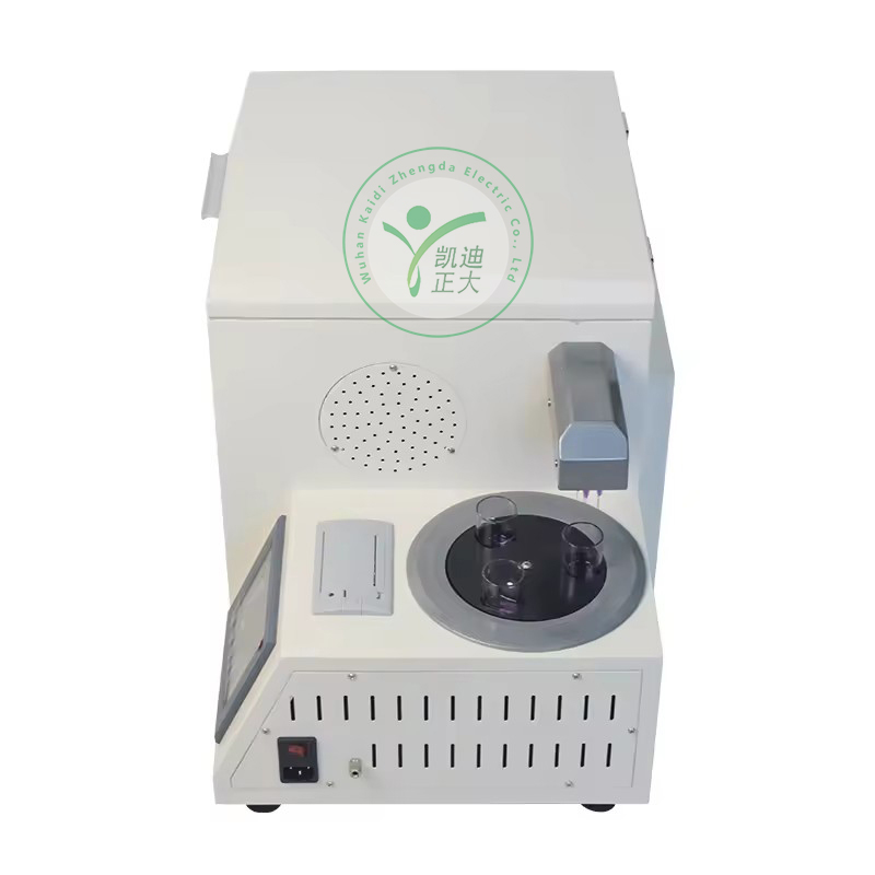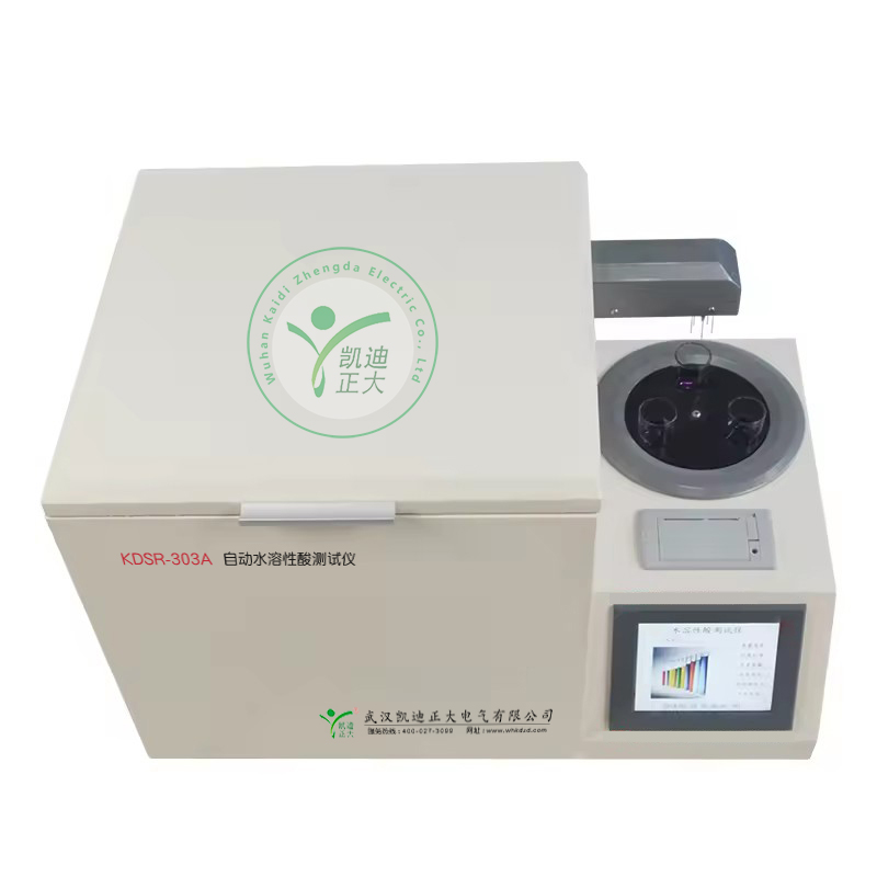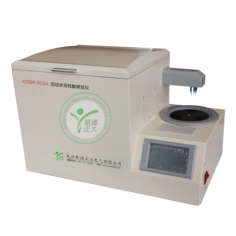 我公司生產(chǎn)的KDSR-303A型自動水溶性酸測試儀(比色法)是根據(jù)《GB/T7598-2008運(yùn)行中變壓器油水溶性酸測定法》及相關(guān)標(biāo)準(zhǔn)設(shè)計制造。采用大屏幕彩色液晶顯示器,利用微處理器控制,可以根據(jù)用戶的設(shè)定條件自動完成加熱、恒溫、振蕩、取樣、測試、清洗、打印等功能,可以一次性測量1-3個樣品,縮短了用戶的測試時間,提高了工作效率,減輕了工作人員的勞動強(qiáng)度;并支持無線傳輸功能。