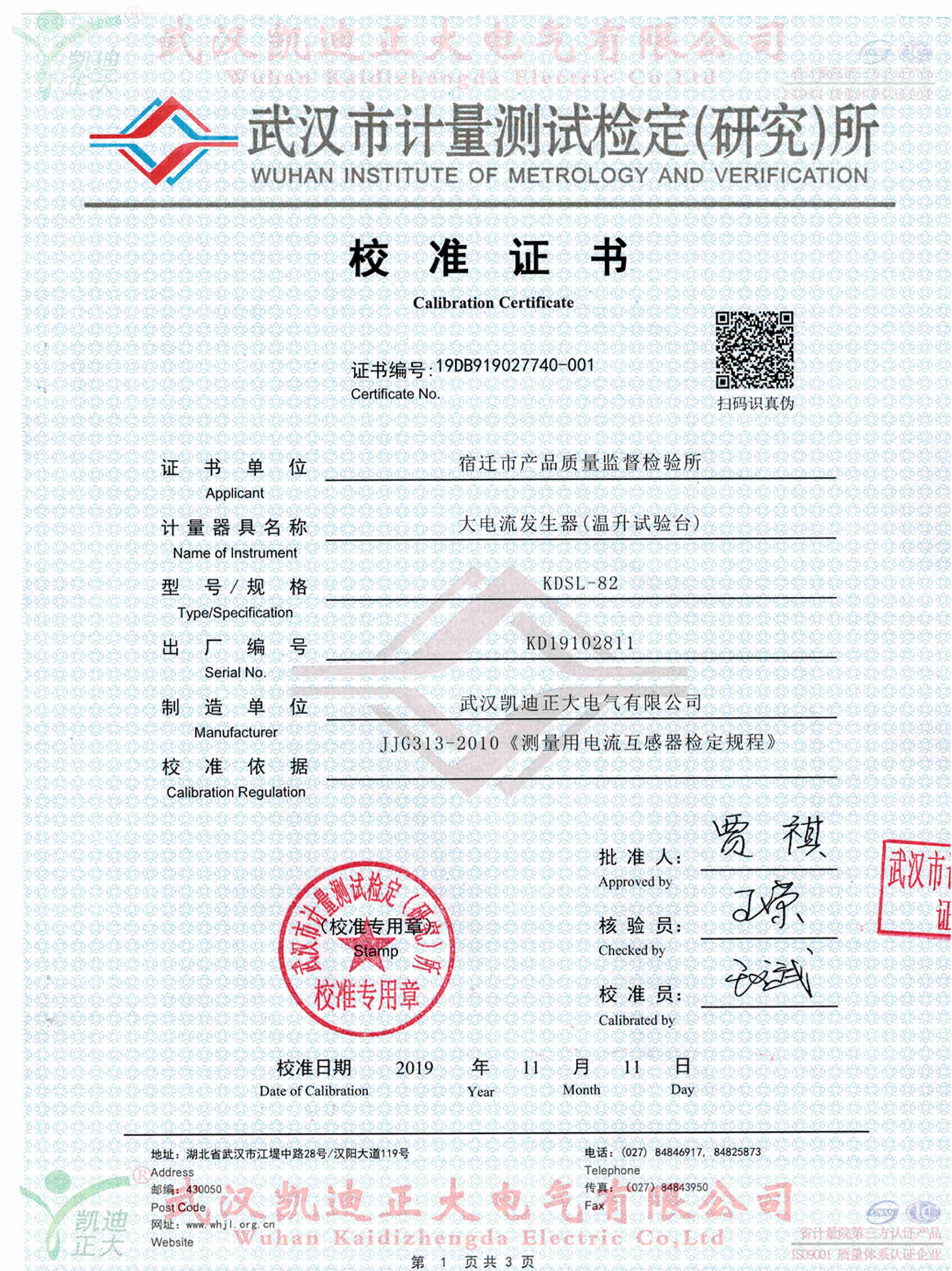 武漢市計(jì)量測(cè)試檢定(研究)所對(duì)宿遷市產(chǎn)品質(zhì)量監(jiān)督檢驗(yàn)所采購(gòu)的產(chǎn)品作檢定效驗(yàn)報(bào)告。