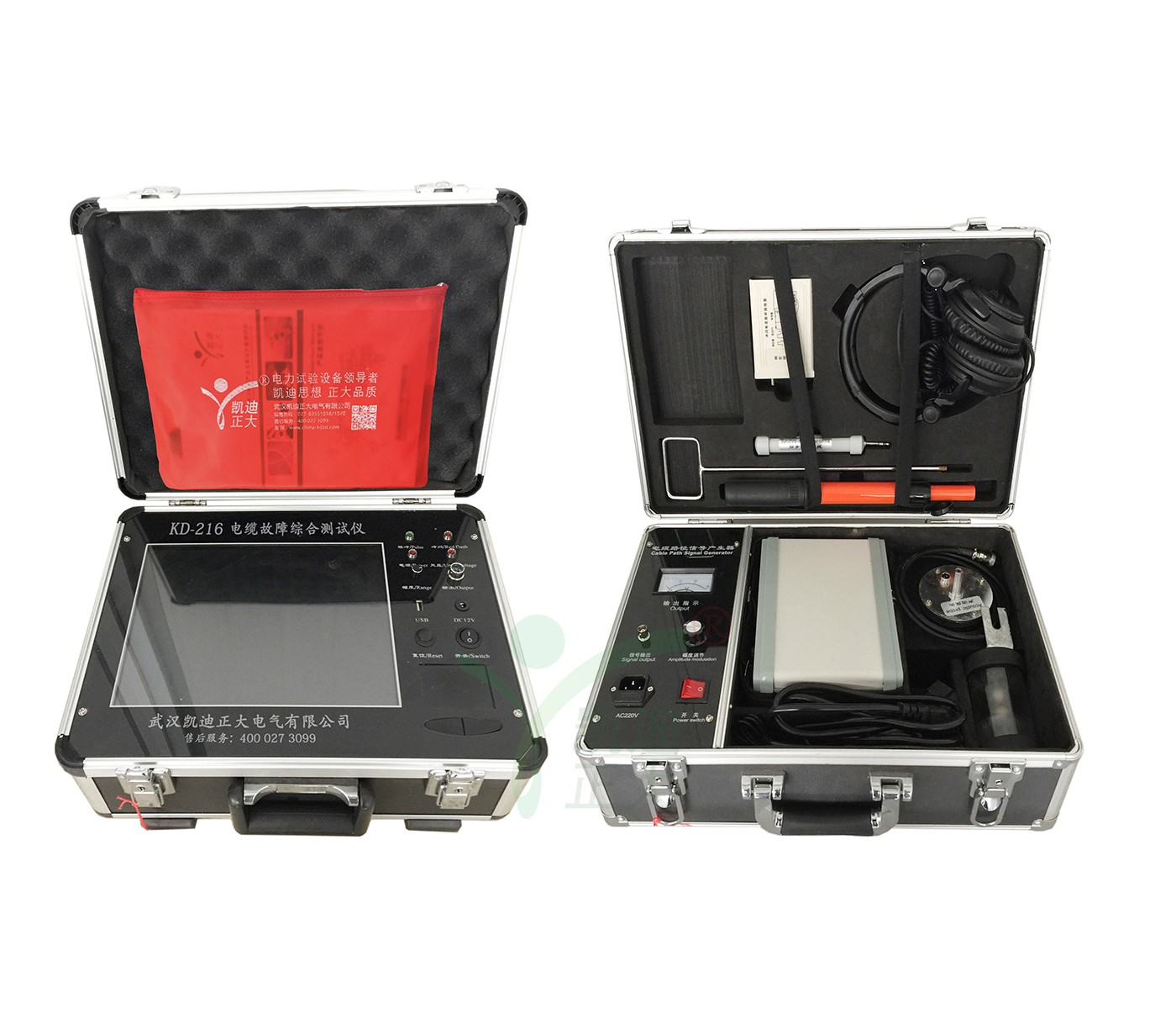 KD-216電纜故障測(cè)試儀是由KD-216路徑信號(hào)發(fā)生器、KD-216路徑定位接受機(jī)、感應(yīng)式探頭、電位差式探測(cè)架等組成。電纜尋跡及故障定位儀是光纜、電纜故障定位測(cè)試的專用儀表,適用測(cè)試對(duì)象為具有金屬導(dǎo)體(線對(duì)、護(hù)層、屏蔽層)的各種光纜、電纜。其主要功能為對(duì)地絕緣不良點(diǎn)的定位測(cè)試,線纜路徑的探測(cè)以及線纜埋深的測(cè)試。有線通信的暢通和電力的輸送有賴于電纜線路的正常運(yùn)行。