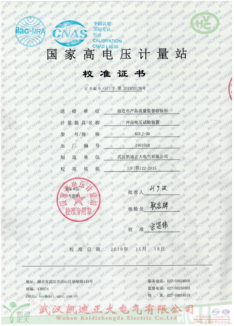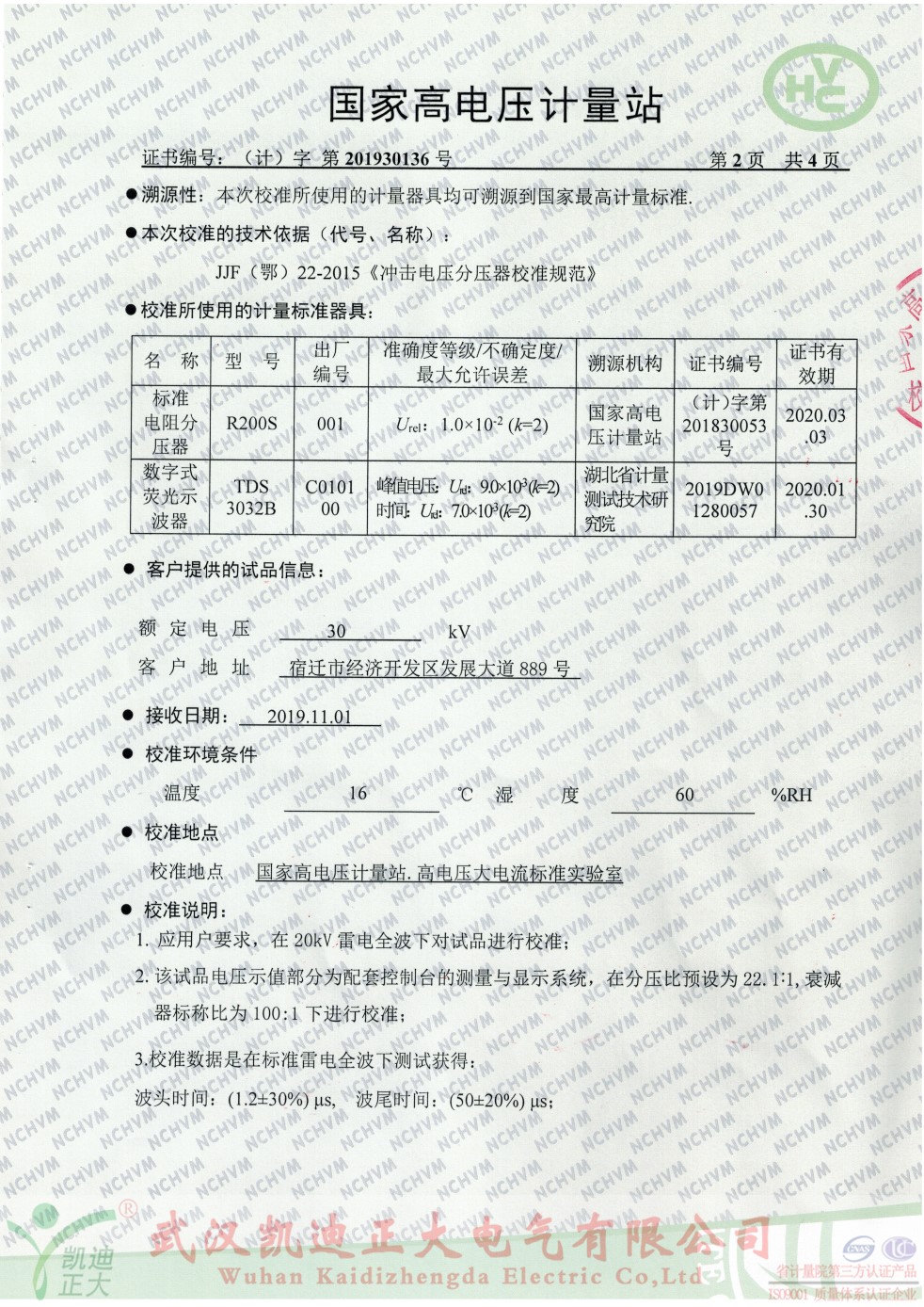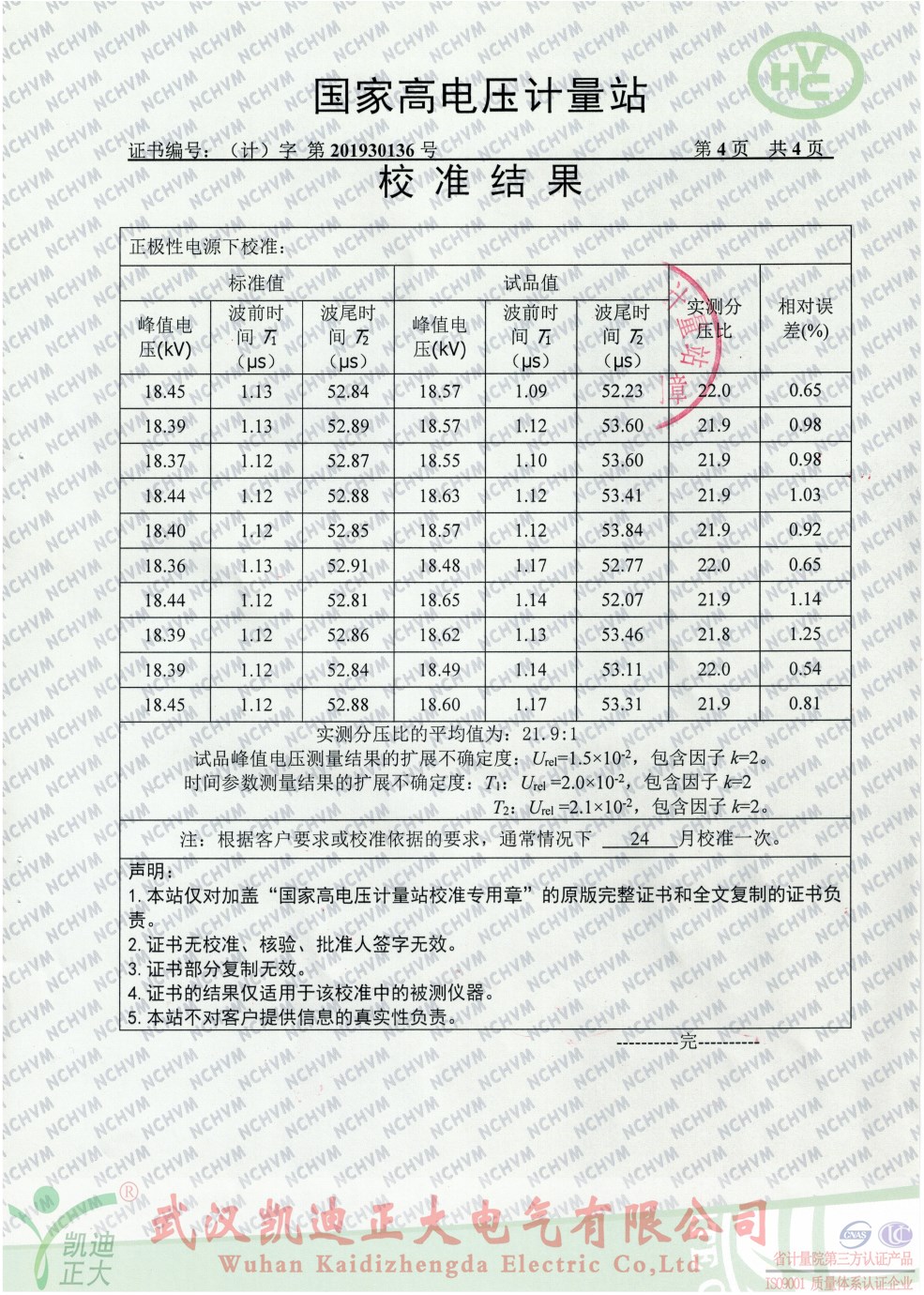 國家高電壓計量站校準(zhǔn)證書-雷電沖擊電壓發(fā)生器