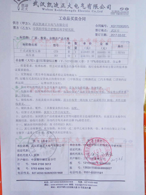 中國科學(xué)院合肥物質(zhì)科學(xué)研究院認(rèn)可我公司干式試驗(yàn)變壓器,再一次證明了武漢凱迪正大電氣有限公司在電氣試驗(yàn)設(shè)備行業(yè)領(lǐng)導(dǎo)者的地位。