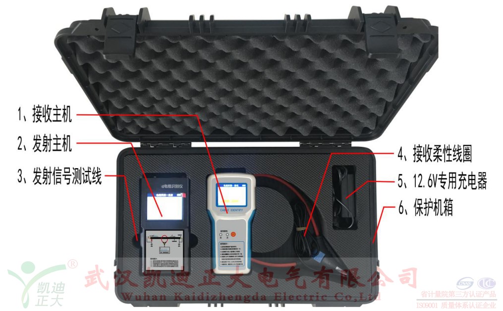 KD-214A帶電電纜識(shí)別儀(以下簡(jiǎn)稱識(shí)別儀)是用于將某一特定電纜從一束電纜中識(shí)別出來(lái)的專用儀器。它即能識(shí)別停電電纜,也能識(shí)別帶電電纜,滿足了電力施工現(xiàn)場(chǎng)對(duì)電纜識(shí)別的多重需求。識(shí)別儀主要由發(fā)射主機(jī)、接收主機(jī)、發(fā)射連線、發(fā)射卡鉗與柔性測(cè)量線圈構(gòu)成。識(shí)別儀的設(shè)計(jì)相比上一代產(chǎn)品更加緊湊小巧,攜帶方便,具有如下特點(diǎn):