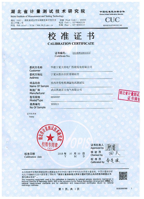 通過《直流數(shù)字電流表試行檢定規(guī)程》(JJG 598-1989)《泄漏電流測量儀(表)檢定規(guī)程》(JJG 843-1993),武漢凱迪正大電氣有限公司生產(chǎn)的水內(nèi)冷發(fā)電機泄漏電流測試儀:輸出電壓:80KV輸出電流:300mA輸出功率:24KW符合國家電力試驗標(biāo)準(zhǔn),精度符合國家能源局發(fā)電機水內(nèi)冷耐壓試驗需求。