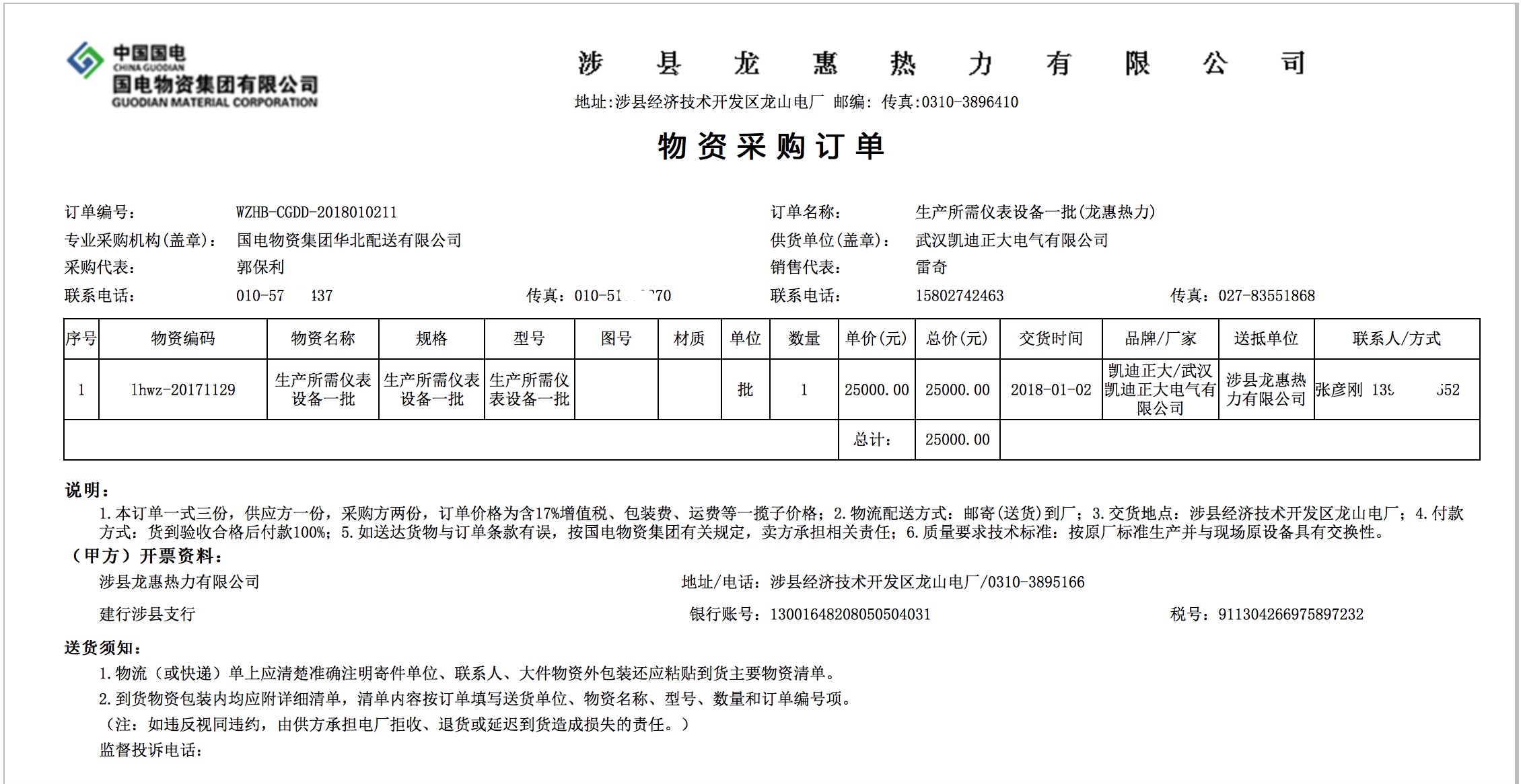 賀我司中標中國國電涉縣龍惠熱力電廠儀表設備項目