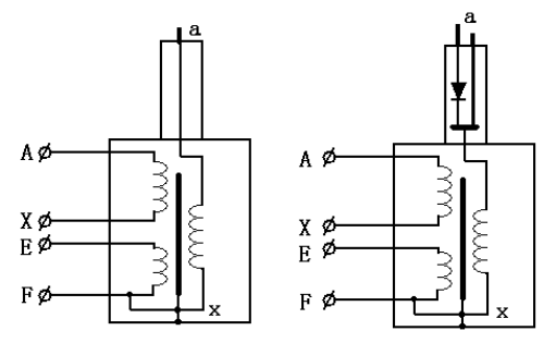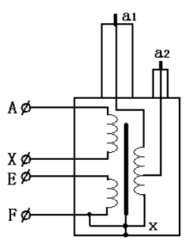 為了同時滿足一個變壓器電壓較高電壓較小與電流較低電流較大之間的矛盾,將高壓繞組分成兩個來繞,一個是電流較大的繞組,另一個是電流較小的繞組,然后兩個繞組串接分別引出,原理示意圖如下: