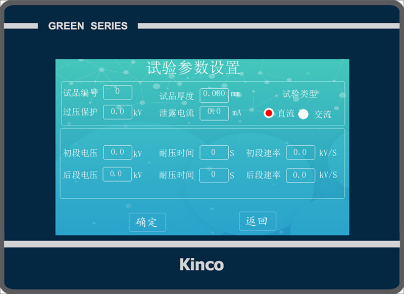 瞬時升壓模式:1、輸入相應(yīng)的試品參數(shù)及試驗(yàn)類型;