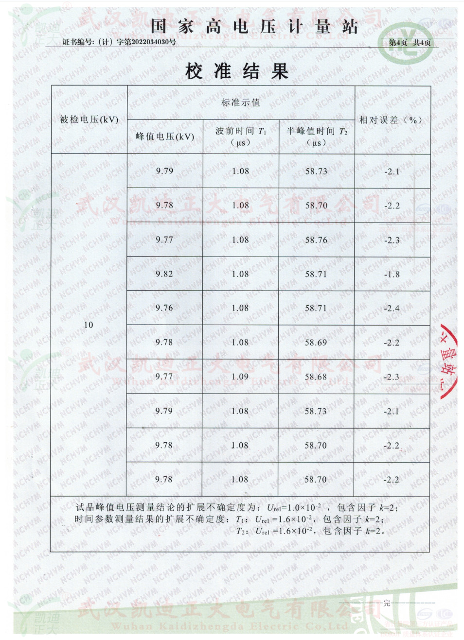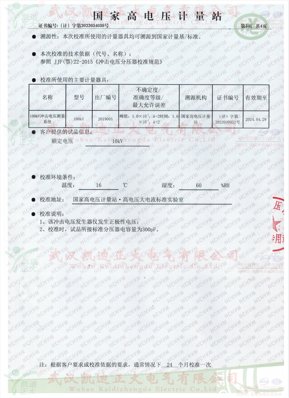 KDLJ-30雷電沖擊電壓發(fā)生裝置獲得國家高電壓計量站(武高所)校準證書(計)字第2022034030號,校準依據(jù)參照JJF(鄂)22-2015檢定合格,符合標準。10kV沖擊電壓發(fā)生裝置用于充電樁,新能源汽車,太陽能,低壓成套,低壓電器,高低壓開關(guān)等的檢測雷電沖擊試驗。