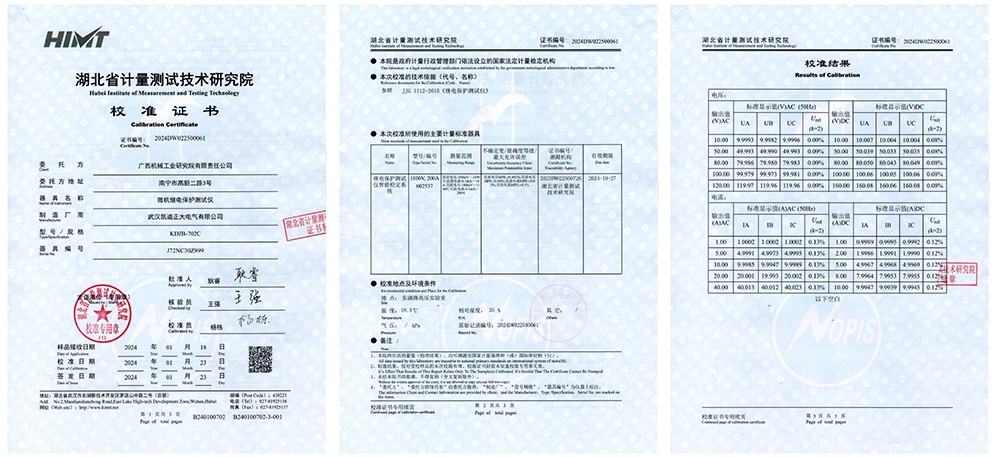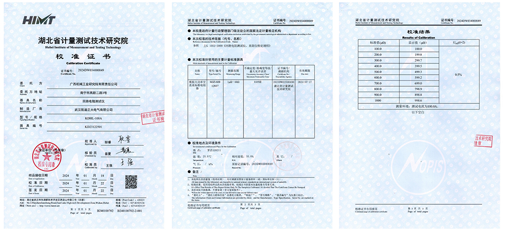2024年1月22日,廣西機械工業(yè)研究院有限責任公司采購武漢凱迪正大的KDHG-A 互感器綜合測試儀 、KDHL-100A 回路電阻測試儀、KDJB-702C 微機繼電保護測試儀等電力儀器儀表,通過了湖北省計量測試技術(shù)研究院的嚴格校準。武漢凱迪正大作為電力儀器儀表的供應(yīng)商,先后為國內(nèi)外多家企業(yè)提供所需的的試驗設(shè)備,產(chǎn)品在行業(yè)內(nèi)受到廣泛好評和推崇。