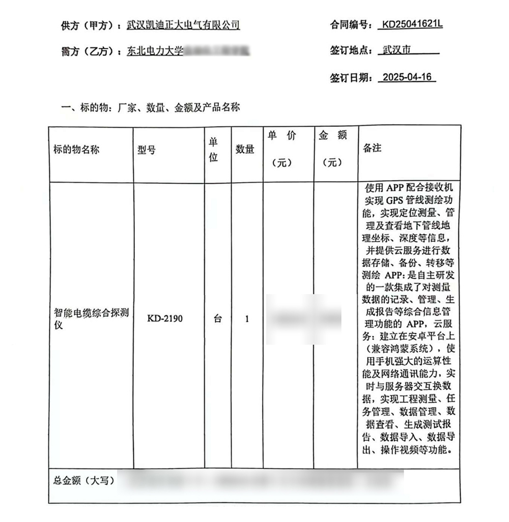在眾多供應(yīng)商中,東北電力大學(xué)最終選擇了武漢凱迪正大電氣。這一選擇背后,是對武漢凱迪正大電氣多年來在電力行業(yè)積累的技術(shù)實(shí)力的認(rèn)可,更是對其產(chǎn)品在實(shí)際應(yīng)用中所展現(xiàn)出的可靠性、效率的信賴。武漢凱迪正大電氣以其專業(yè)的服務(wù)團(tuán)隊(duì)、完善的售后保障以及KD-2190智能電纜綜合探測儀的性能,贏得了東北電力大學(xué)的青睞與信任。