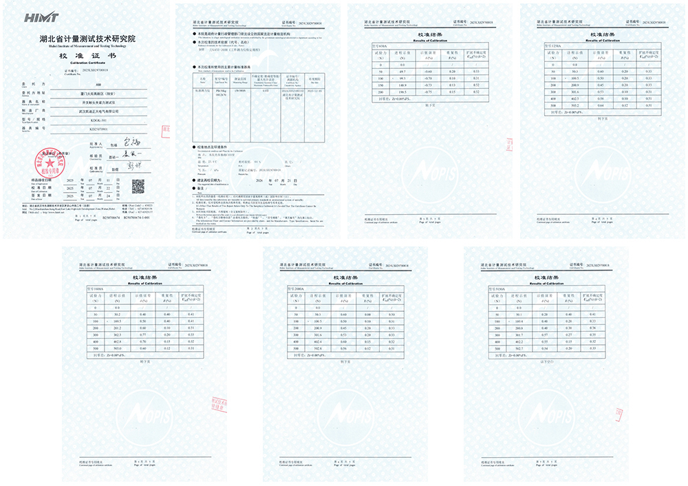 2025年7月,廈門火炬高壓區(翔安)正式引入武漢凱迪正大電氣有限公司研發生產的KDGK-301開關觸頭夾緊力測試儀,此次采購通過湖北省計量測試技術研究院的校準并取得校準證書。